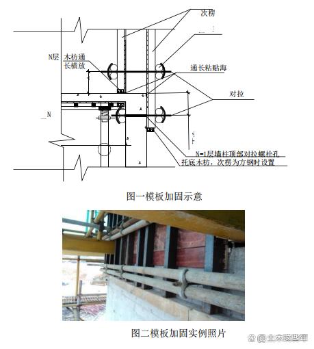 發(fā)表時(shí)間:2026-03-17 09:05 1外墻柱模板下口防漏漿錯(cuò)臺(tái)方案 1.1工藝流程 清理混凝土面層一放線一粘貼海綿條一模板安裝。1.2技術(shù)要點(diǎn) (1)室內(nèi)一側(cè)在模板底部通長(zhǎng)粘貼海綿條,通長(zhǎng)設(shè)置橫向木枋將模板頂緊;(2)室外一側(cè)在墻側(cè)頂部通長(zhǎng)粘貼海綿條; (3)利用N-1層墻柱頂部對(duì)拉螺栓孔進(jìn)行N層墻柱底部對(duì)拉固定,螺栓孔距離N層底板頂 部距離根據(jù)N-1層模板設(shè)計(jì)計(jì)算確定,但不得大于300mm;(4)N層墻柱底部對(duì)拉螺栓距離N-1層板頂距離不大于200mm;(5)主次楞根據(jù)模板方案確定,當(dāng)次楞為方鋼時(shí)底部設(shè)置托底木枋,采用10號(hào)鐵絲與墻體鋼筋拉結(jié)固定。 ![]() 2后澆帶獨(dú)立模板與支架體系方案(A) 2.1工藝流程 繪制后澆帶獨(dú)立支撐布置圖一模板加工一放線一搭設(shè)2.2技術(shù)要點(diǎn) (1)繪制后澆帶獨(dú)立支撐布置圖需保證覆蓋所有后澆帶部位;(2)后澆帶兩側(cè)的梁板模板及架體需留設(shè)兩根立桿,模板、主次龍骨及支模架均在此處斷開: (3)后澆帶支模架留設(shè)出專門的過車、過人通道并進(jìn)行加強(qiáng)處理,防止后澆帶支模架橫 桿被隨意拆除;(4)兩側(cè)模架拆除過程旁站監(jiān)督,避免拆錯(cuò)后澆帶模架。(5)后澆帶頂部?jī)蓚?cè)采用小砌塊砌筑擋水臺(tái),中間沿后澆帶方向通長(zhǎng)放置三根木枋,頂部設(shè)置模板進(jìn)行防護(hù)。 ![]() 3樓梯平臺(tái)處支撐立桿墊設(shè)預(yù)制混凝土塊應(yīng)用方案3.1工藝流程 預(yù)制墊塊一放置墊塊一立桿搭設(shè)一模板安裝。3.2技術(shù)要點(diǎn) (1)樓梯平臺(tái)模板架體搭設(shè)時(shí)必須采用預(yù)制圓形混凝土墊塊,嚴(yán)禁使用鋼筋焊制的支架; (2)圓形墊塊直徑為100mm,高度同板厚,預(yù)制時(shí)可采用直徑100mmPVC (3)套管: (4)預(yù)制墊塊強(qiáng)度等級(jí)不宜低于C30; (5)立桿搭設(shè)時(shí),立桿與混凝土墊塊必須同心,嚴(yán)禁偏移,以防止立桿失穩(wěn); ![]() 4墻體門窗洞口模板加固措施方案 4.1工藝流程 制作定型模板一放線一定位筋固定一粘貼海綿條一模板安裝。 4.2技術(shù)要點(diǎn) (1)門窗洞口宜采用定型模板,丁字墻洞口宜采用整塊模板以減少拼縫;(2)采用木模板時(shí),四周宜采用定型鋼抱角,同時(shí)洞口模板內(nèi)部加設(shè)支撐,支撐間距400mm; (3)洞口模板宜采用專用定位筋定位固定,窗洞口四面均需設(shè)置定位筋,且避免與主筋焊接; (4)模板支設(shè)前將根部應(yīng)清理干凈:用高壓氣泵將剔鑿的混凝土殘?jiān)?、綁扎絲等雜物吹干凈;模板面脫模劑涂刷均勻,擦拭光亮。(5)門窗洞口模板側(cè)面加貼海綿條防止漏漿,澆筑混凝土?xí)r從窗兩側(cè)同時(shí)澆筑,避免窗模偏位; (6)窗洞口模板下要設(shè)排氣孔,排氣孔直徑宜為20mm,間距500mm以保證門窗洞口下方混凝土振搗密實(shí),同時(shí)檢驗(yàn)混凝土飽滿度。 ![]() 5墻柱定位雙控線控制方案 5.1工藝流程 控制防線一清理浮漿一檢查軸線偏移一控制模板截面尺寸一模板驗(yàn)收。5.2技術(shù)要點(diǎn) (1)墻柱定位采用邊線及控制線雙線控制: (2)控制線距離邊線200mm,用于檢查軸線偏移; (3)控制線放完后,清理施工縫表面浮漿、鑿除表面松動(dòng)石子; ![]() 6地下室外墻下部模板加固方案 6.1工藝流程 模板制作一彈線一組裝模板一加固成型交檢。6.2技術(shù)要點(diǎn) (1)導(dǎo)向施工時(shí),沿止水鋼板下方設(shè)置三段式止水螺桿; (2)在模板拆除時(shí),注意保護(hù)三段式止水螺桿不被破壞; (3)施工縫鑿毛清理后,沿導(dǎo)墻邊沿粘貼海綿條,順直不間斷;(4)剪力墻模板向下延伸至超過導(dǎo)墻上口邊50mm,方鋼背楞延伸至導(dǎo)墻對(duì)拉螺桿,然后鎖緊。 (5)剪力墻模板支設(shè)完成后應(yīng)復(fù)查垂直度,做最后的調(diào)整固定。 ![]() 7衛(wèi)生間降板方鋼框吊模方案 7.1工藝流程 按模板翻樣圖進(jìn)行組合一定型模板配置采用方鋼焊接成整體一焊接水平鋼筋做支撐一定位控制線一限位鋼筋一模板安裝。 7.2技術(shù)要點(diǎn) (1)需在模板面彈出降板輪廓線,沿輪廓線固定支架。支架采用直徑10mm (2)鋼筋制作,利用鐵釘與模板固定牢固。 (3)定型模板采用壁厚2mm方管拼焊成整體,角部設(shè)活動(dòng)支撐,避免方鋼框變形。為便于倒運(yùn),模板設(shè)計(jì)成可分解、組裝模式;(4)在衛(wèi)生間吊模安裝時(shí),直接將定型吊模安裝定位支架上,采用鐵絲綁扎牢固。 8內(nèi)墻/柱模板下口防爛根方案 8.1工藝流程 二次壓面一砂漿找平一木方放置一螺栓設(shè)置一砂漿封堵。8.2技術(shù)要點(diǎn) (1)在頂板(或基礎(chǔ)底板)混凝土澆筑時(shí),墻柱根部200mm范圍內(nèi)采用人工找平,保證墻 體兩邊及柱四周標(biāo)高保持一致; (2)在模板底部采用海綿條做好封堵措施??p隙過大時(shí),可裁模板條放到縫隙內(nèi); (3)底部采用木方橫向放置,規(guī)格不小于50X50mm;下部木方放置時(shí)需緊貼模板根部: (4)最下一排對(duì)拉螺栓距地200mm。 ![]() 9樓梯梯段板施工縫設(shè)置方案(施工縫設(shè)置在梯段處)9.1工藝流程 模板支設(shè)(預(yù)留清掃口)一鋼筋綁扎一梳子板卡縫一混凝土澆筑并養(yǎng)護(hù)一施工縫處混凝土鑿毛一支設(shè)清掃口處模板一澆筑混凝土。 9.2技術(shù)要點(diǎn) 支設(shè)樓梯踏步模板,